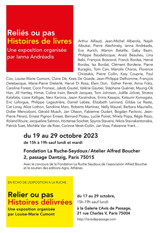 An exhibition organized by Ianna Andréadis at La Ruche - Atelier Alfred Boucher, 2 passage Dantzig, 75015 Paris, October 19 - 29, 2023