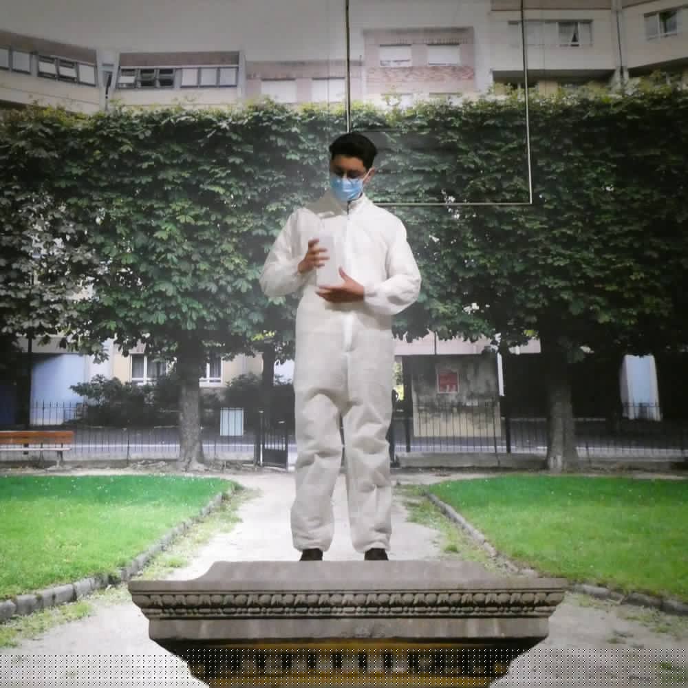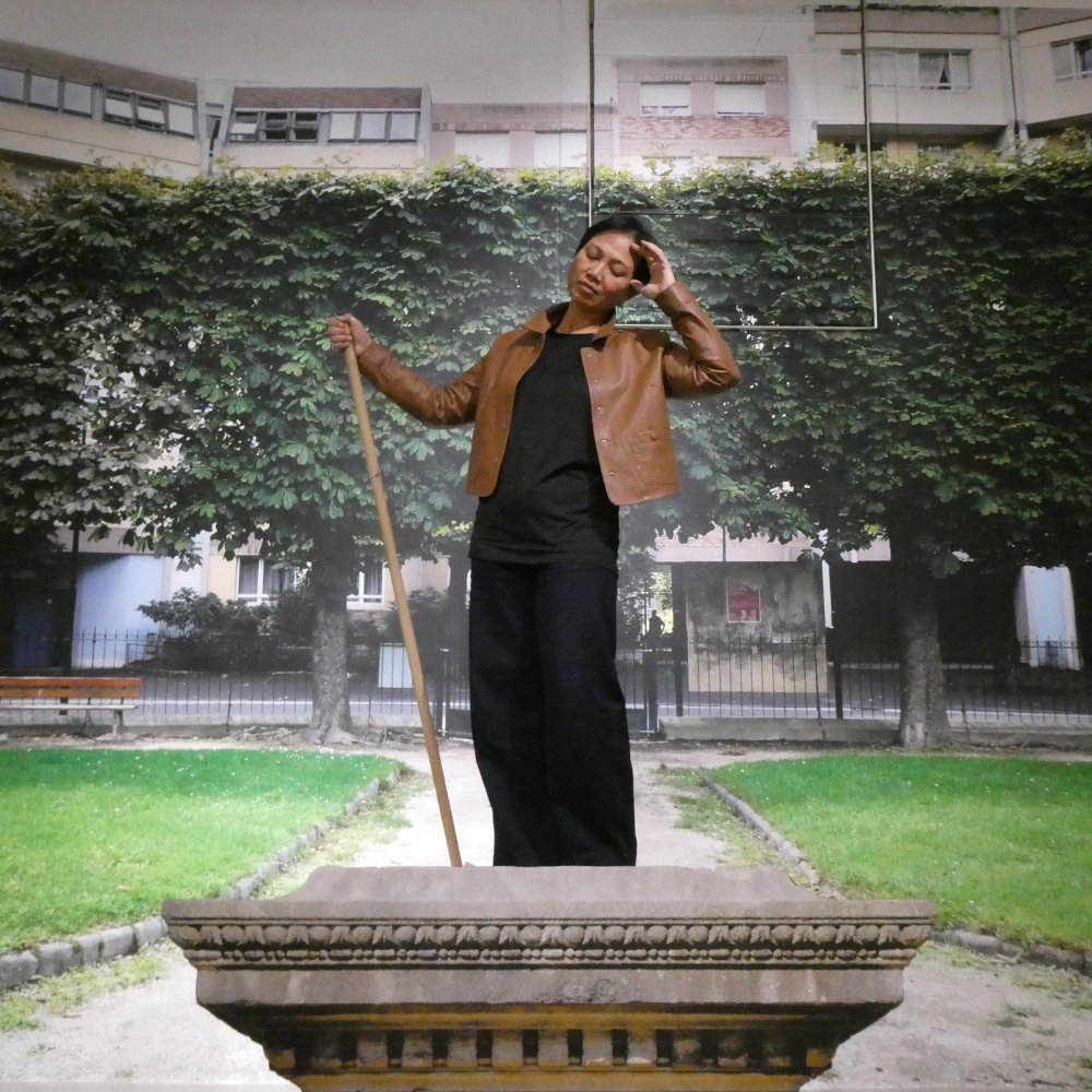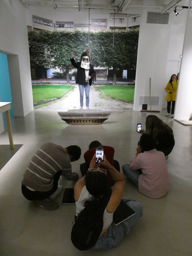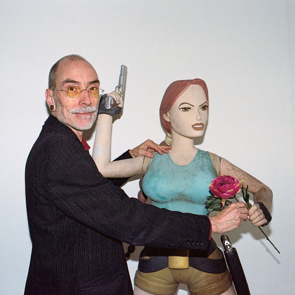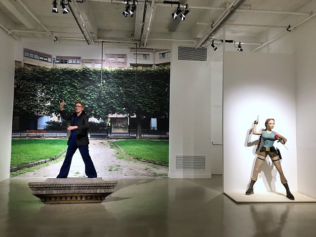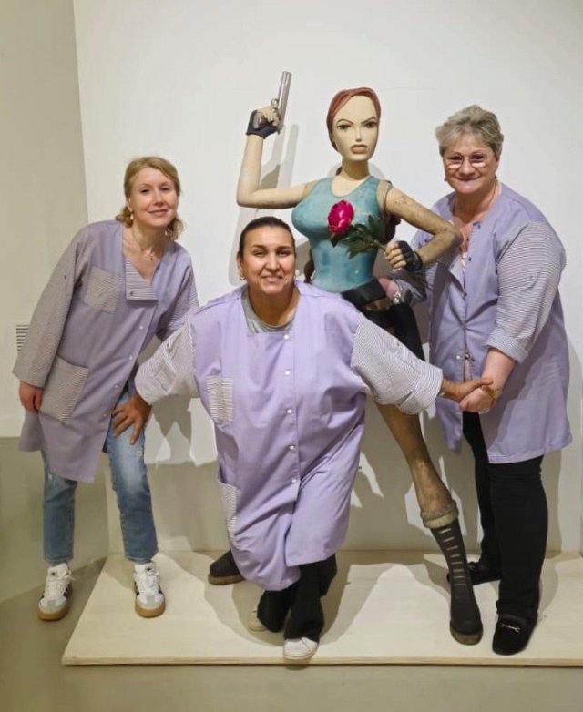 Avril-juin 2025, dans le « studio photo » de l’exposition, avec notre invitée d’honneur Lara Croft et sur le socle