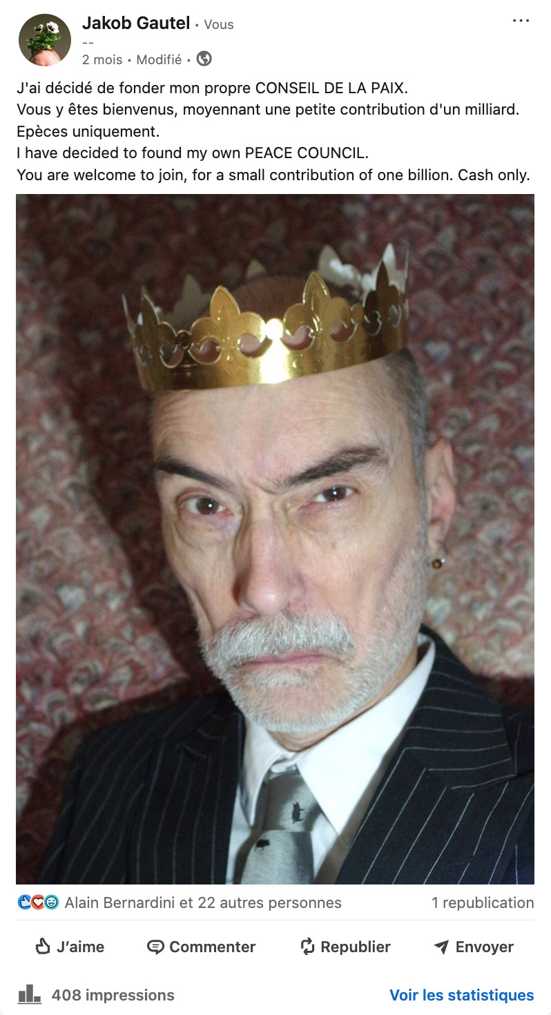I have decided to found my own PEACE COUNCIL.