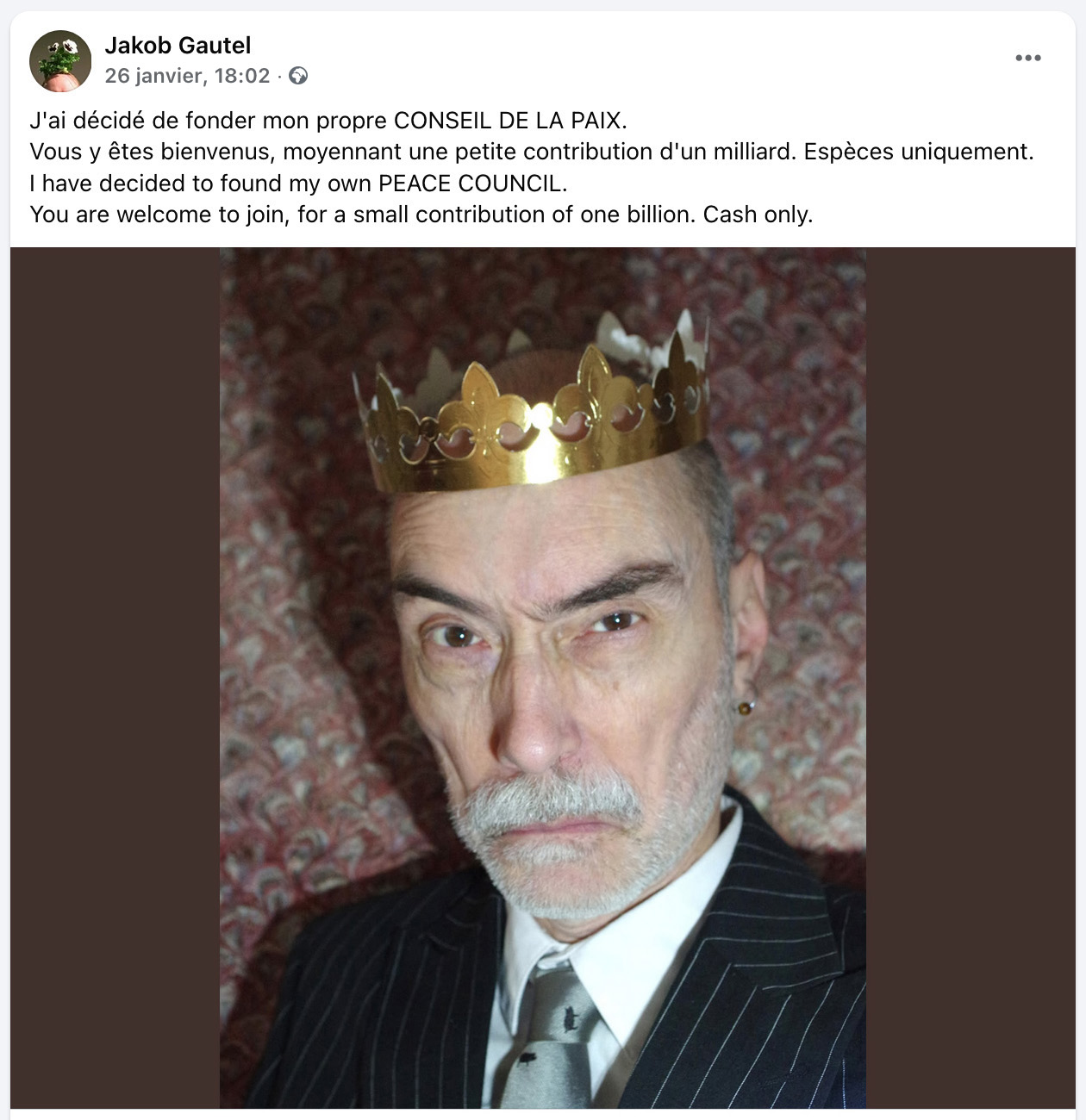 January 26, 2026: I have decided to found my own PEACE COUNCIL. You are welcome to join, for a small contribution of one billion. Cash only.