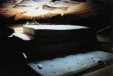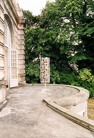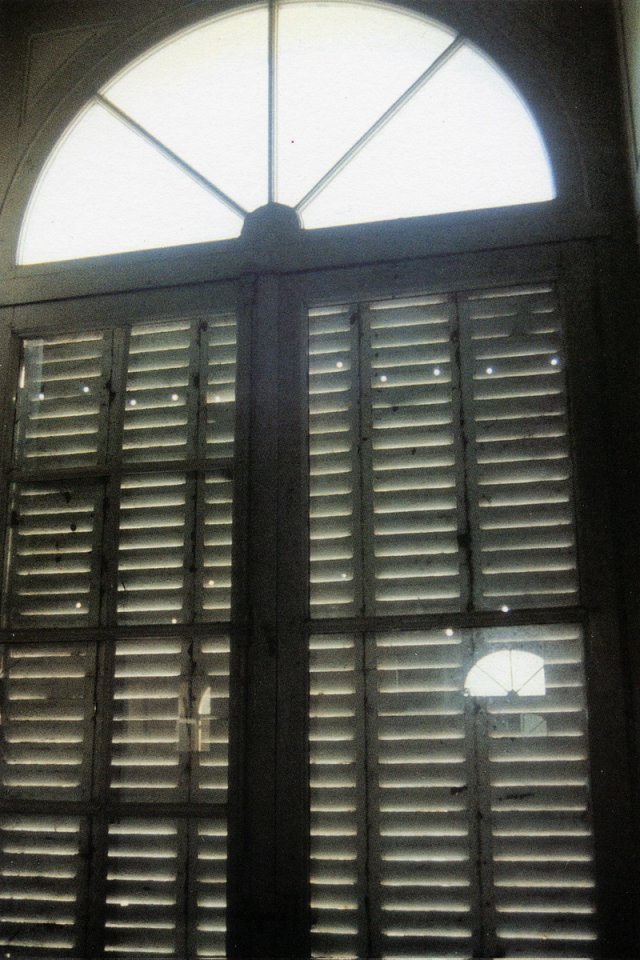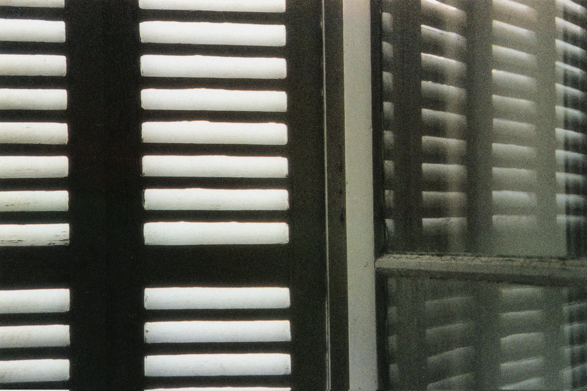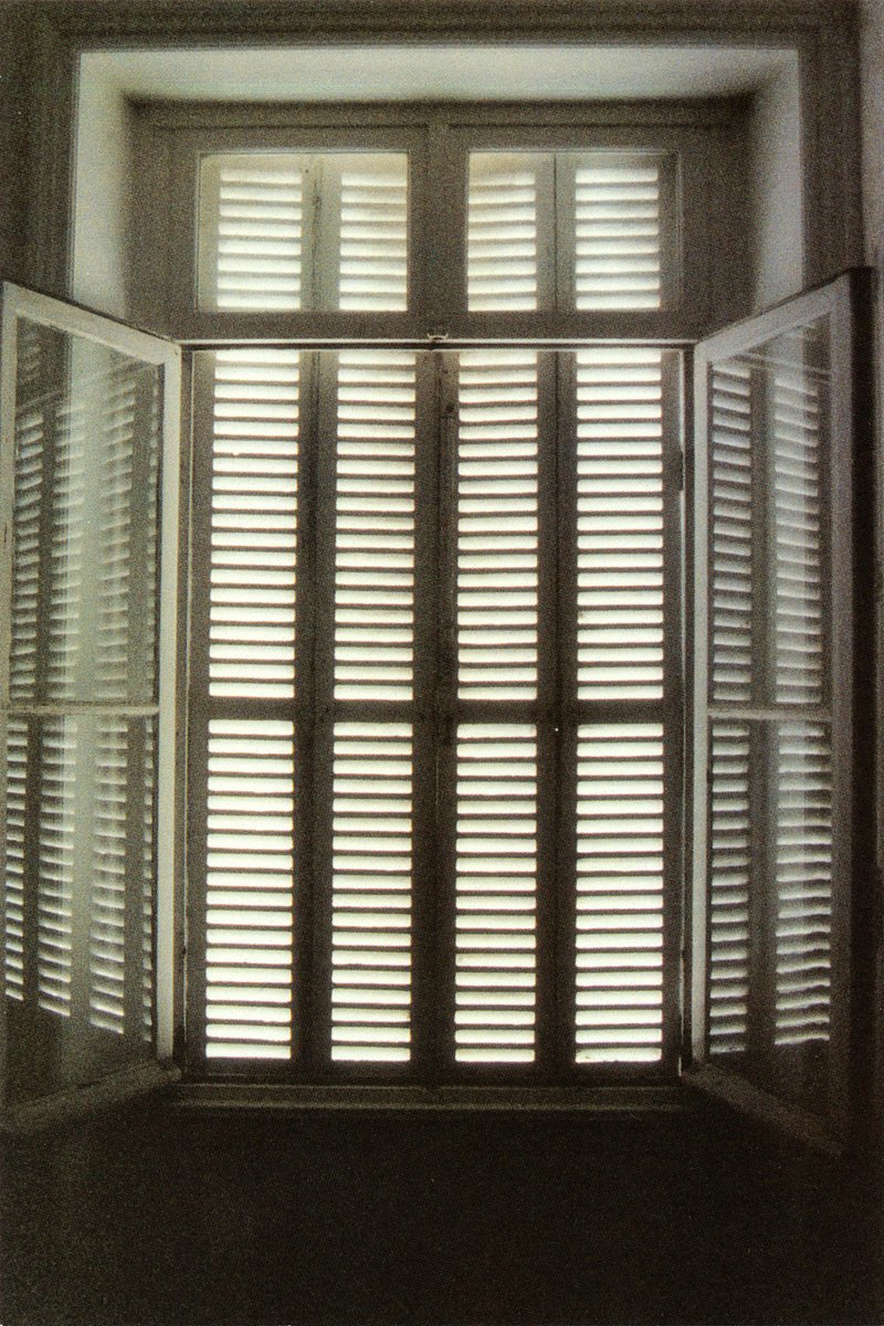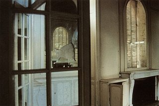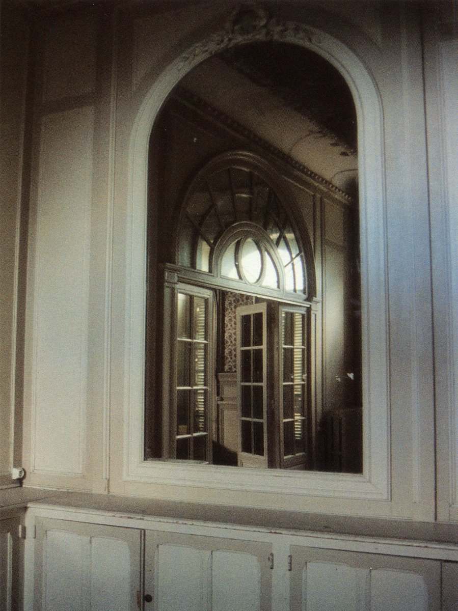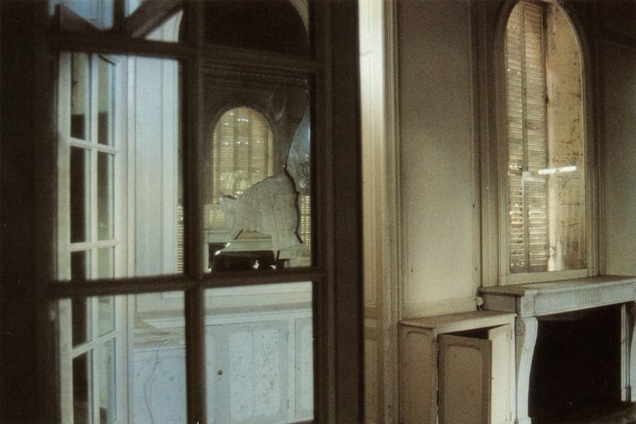Un tourniquet, installé face à la vue sur la baie, prend le contre-pied de la tradition. Il expose des cartes postales représentant non la perspective extérieure mais le panorama … intérieur de la villa. Demeure jadis obsessionnellement ouverte sur l’extérieur, aujourd’hui endormie derrière ses paupières closes, le monde du dehors s’y infiltre avec résistance en minces filets de lumière à travers les fentes des volets, les trouées de balles de plomb, les vitres cassées reflétés par les miroirs brisés. Jakob Gautel stigmatise ainsi la vue extérieure aujourd’hui « prise » : les constructions urbaines récentes s’interposent sur sa trajectoire, s’acharnant à l’obstruer.