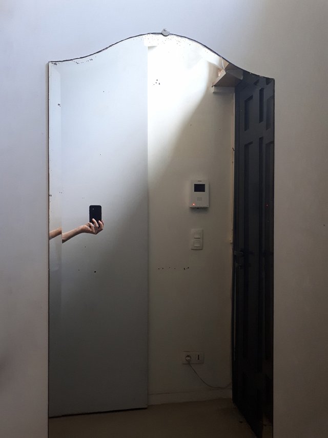 Pensée foudroyanteAutoportrait dans un miroir brisé, anciens bains thermaux, Loutra, Nisyros, Grèce, août 2017