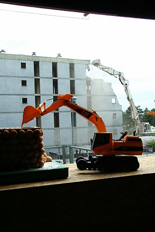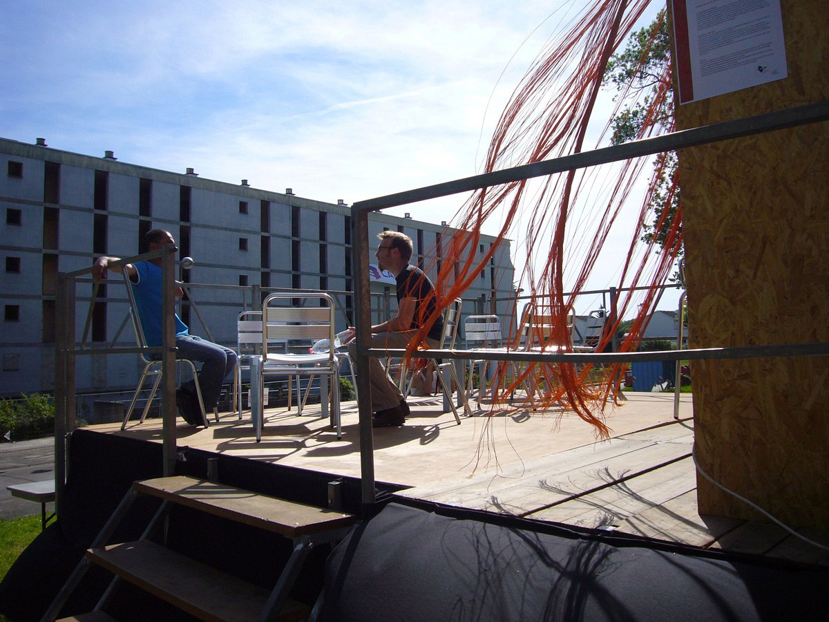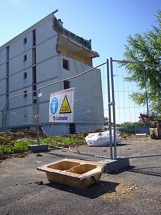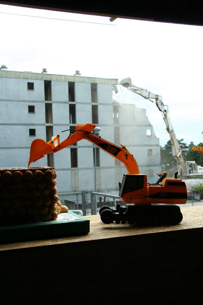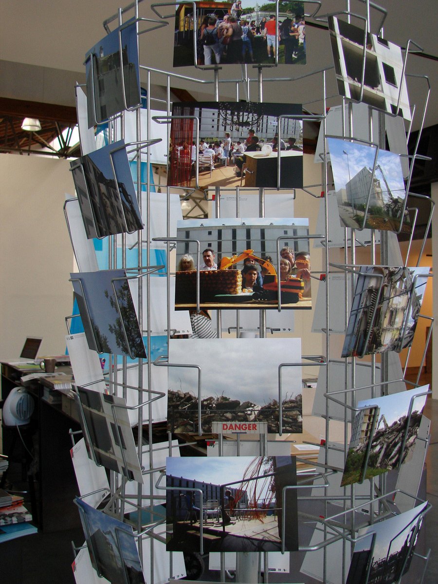 This last tower block was demolished little by little throughout May 2010. We wanted to « put on stage » this slow disappearance with a panoramic bar, which, in the beginning, had no view at all (in French « il n’a point de vue »), but for which the view was progressively to be opened. A new point of view was born.