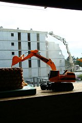 An open air cafe had been put up behind the block that was going to be demolished.