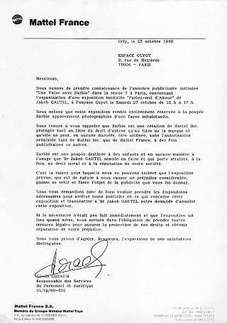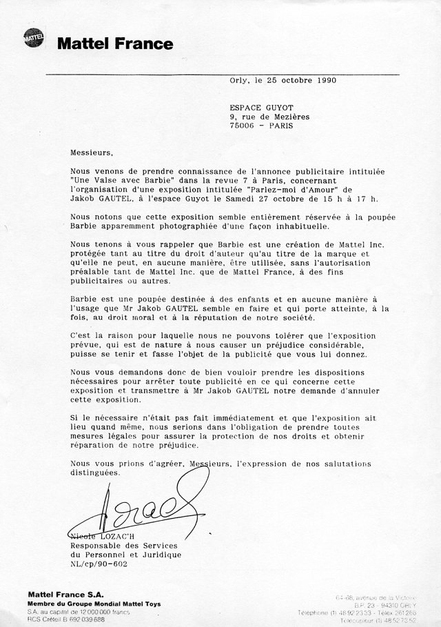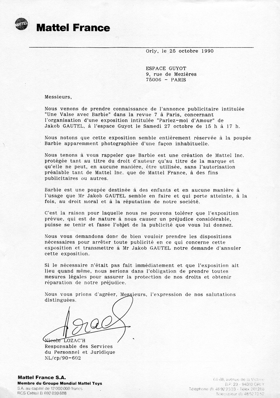Performance at the parisian art fair FIAC at the Grand Palais, after my solo exhibition, showing photos of the private life of Barbie and Ken, was closed due to pressure from the dolls’ producer Mattel.