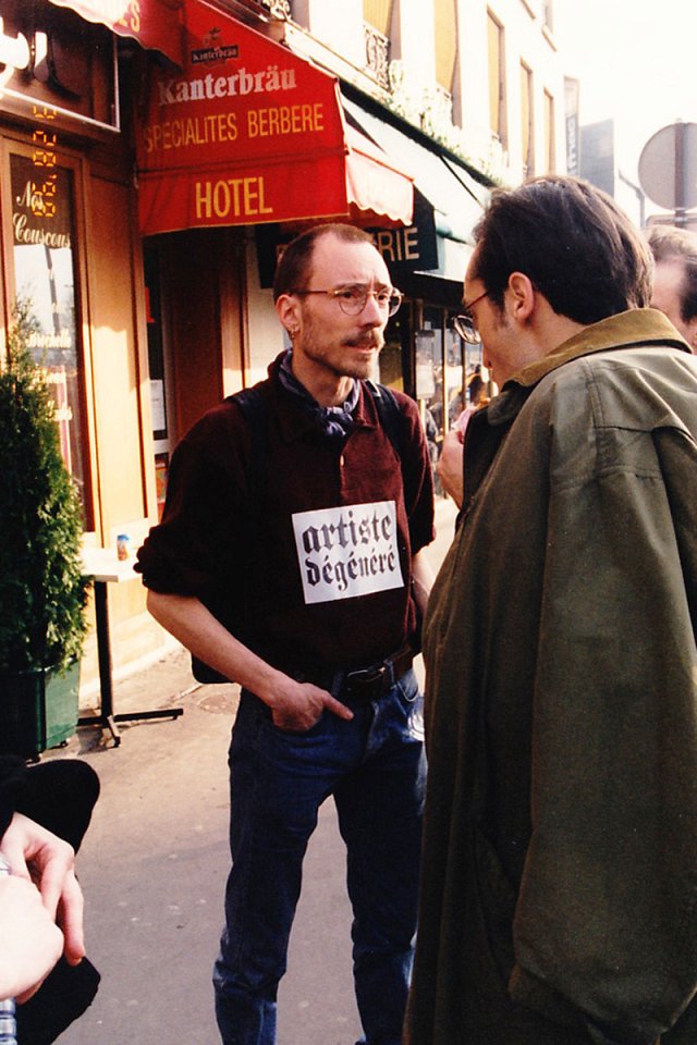 During a demonstration against the extreme right wing party in France, the Front National, I quoted the sadly famous Nazi expression “degenerate artist”, in the typical gothic writing of the time.