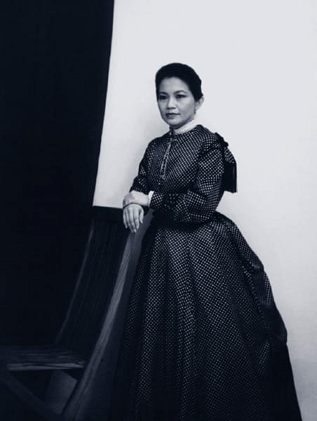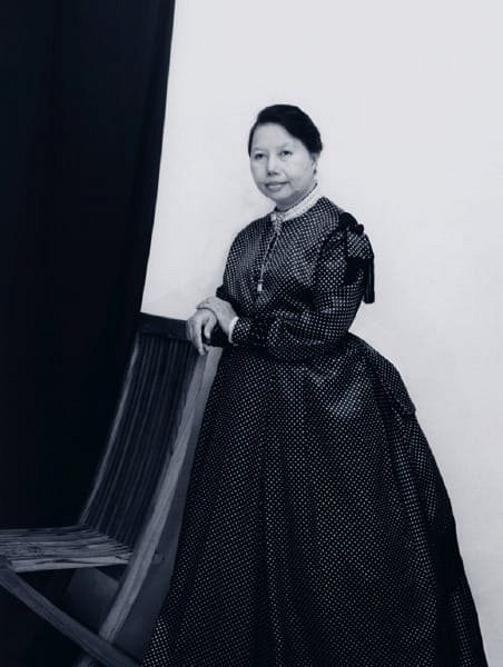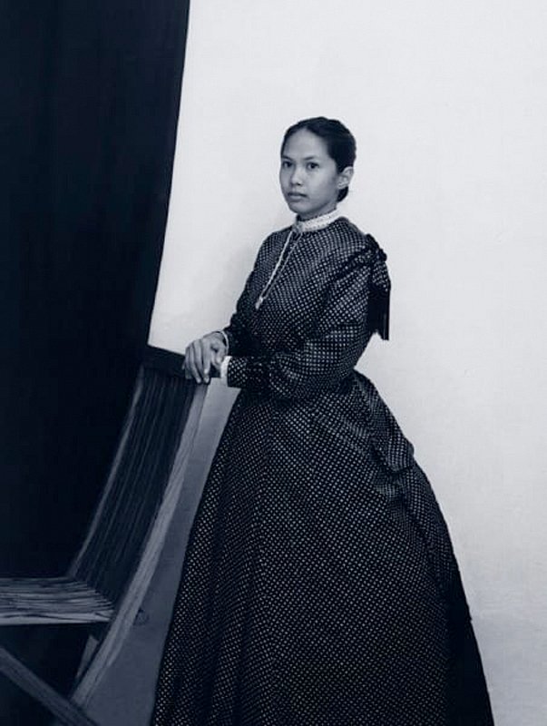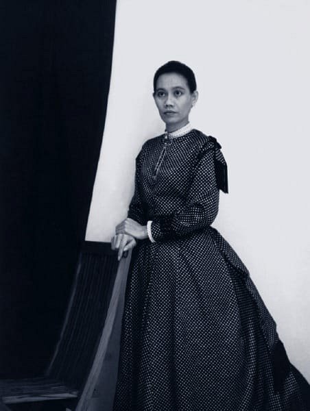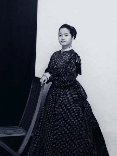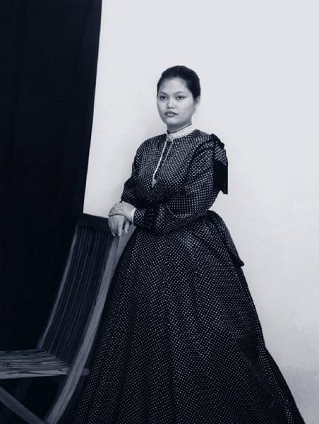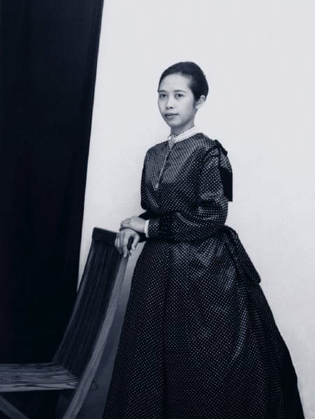 C’est cette histoire énigmatique que l’artiste a cherché à élucider par la voie d’un livre, d’une vidéo et d’un dispositif photographique. Pour ce dernier, Gautel est parti du portrait original de Maria Theodora qu’il a ensuite reconstitué en faisant appel à la fois à des modèles asiatiques et européens. Cette alternance de femmes d’origines différentes traduit la double nature de la métisse Maria Theodora. Les poses un peu guindées évoquent de même la posture difficile de la jeune fille, prise entre deux mondes. Plus important, la multiplication de ces reconstitutions photographiques est pour l’artiste une manière de creuser l’image de son aïeule. Mais la mosaïque de portraits ainsi conçue ne fait que diffracter encore plus l’image de Maria Theodora, dont la nature véritable continue de se dérober, laissant entier le mystère de sa photographie.