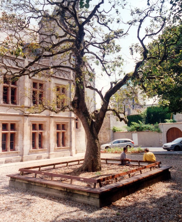Une première version a été réalisée à Karlsruhe, Allemagne, en 1993, cette version-ci à Melle en 2003, dans le cadre de la biennale d’art contemporain L’art d’être au monde, curatrice : Dominique Truco.