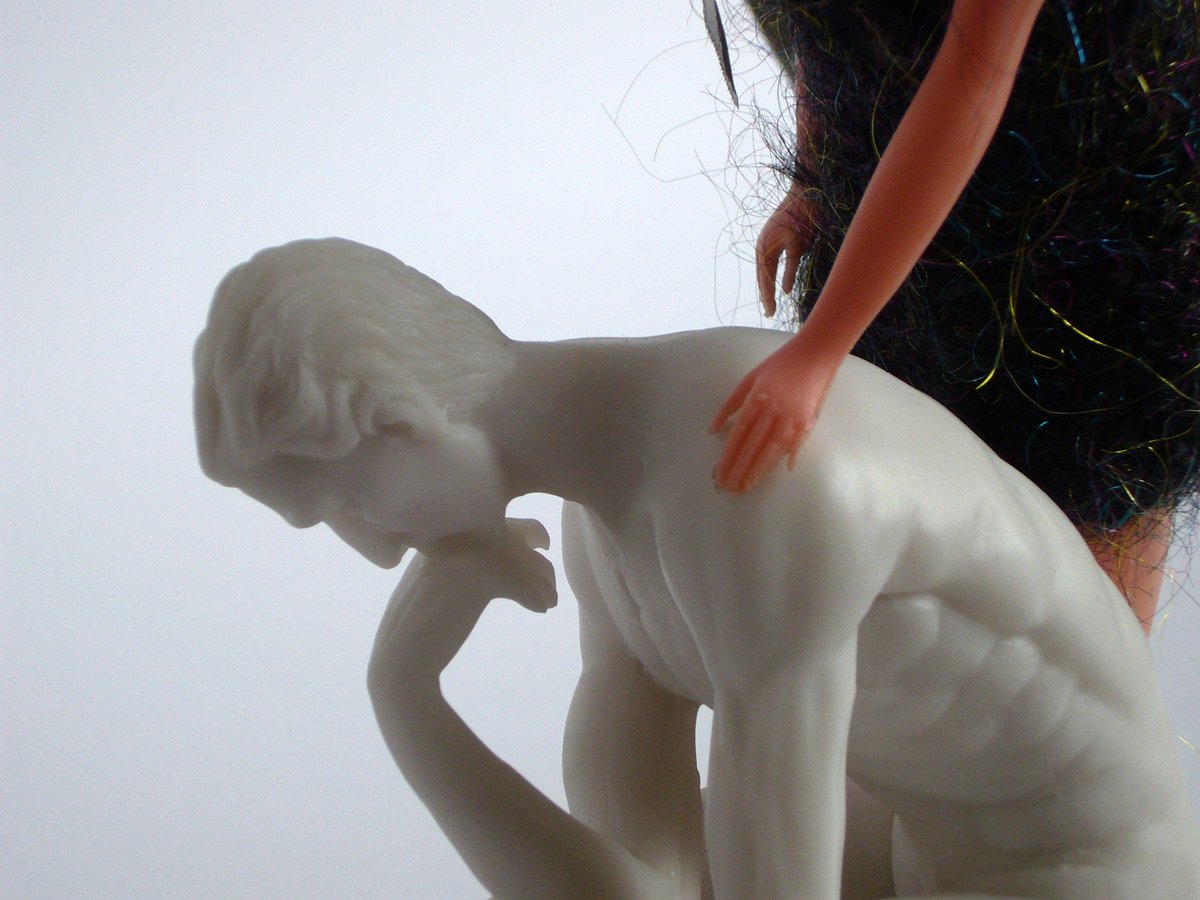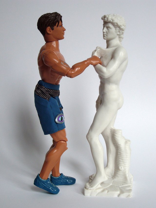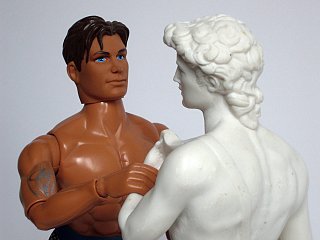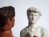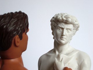 Action-Man et reproduction touristique du David de Michel-Ange (fin du 20e siècle).