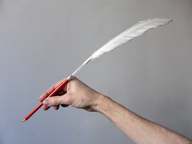 Ein „beflügelter” Stift. A feather-pencil. An answer to the terrorist attacks in Paris against CHARLIE HEBDO, January 2015.