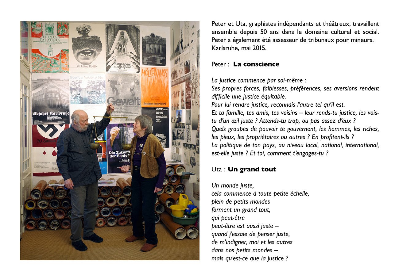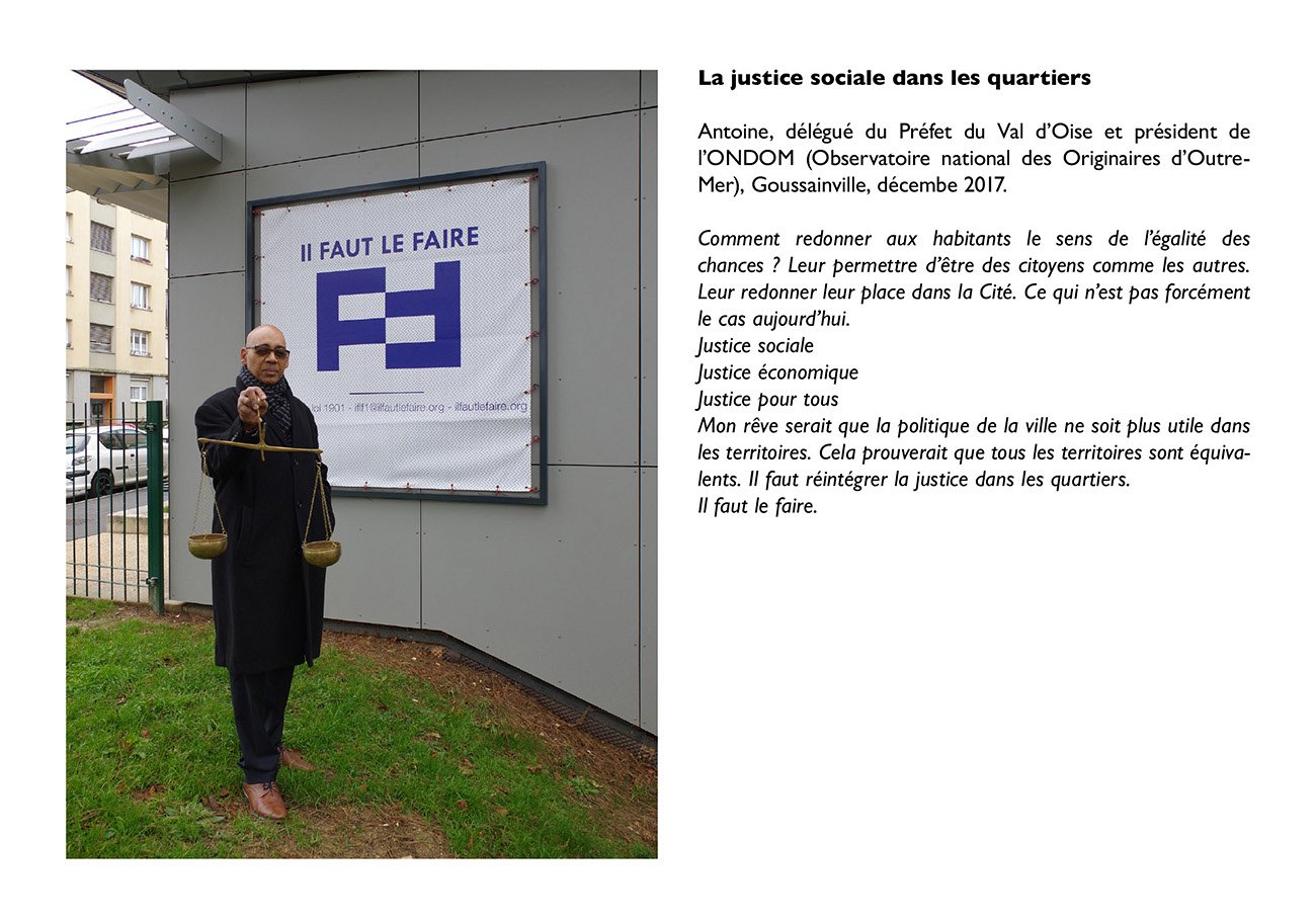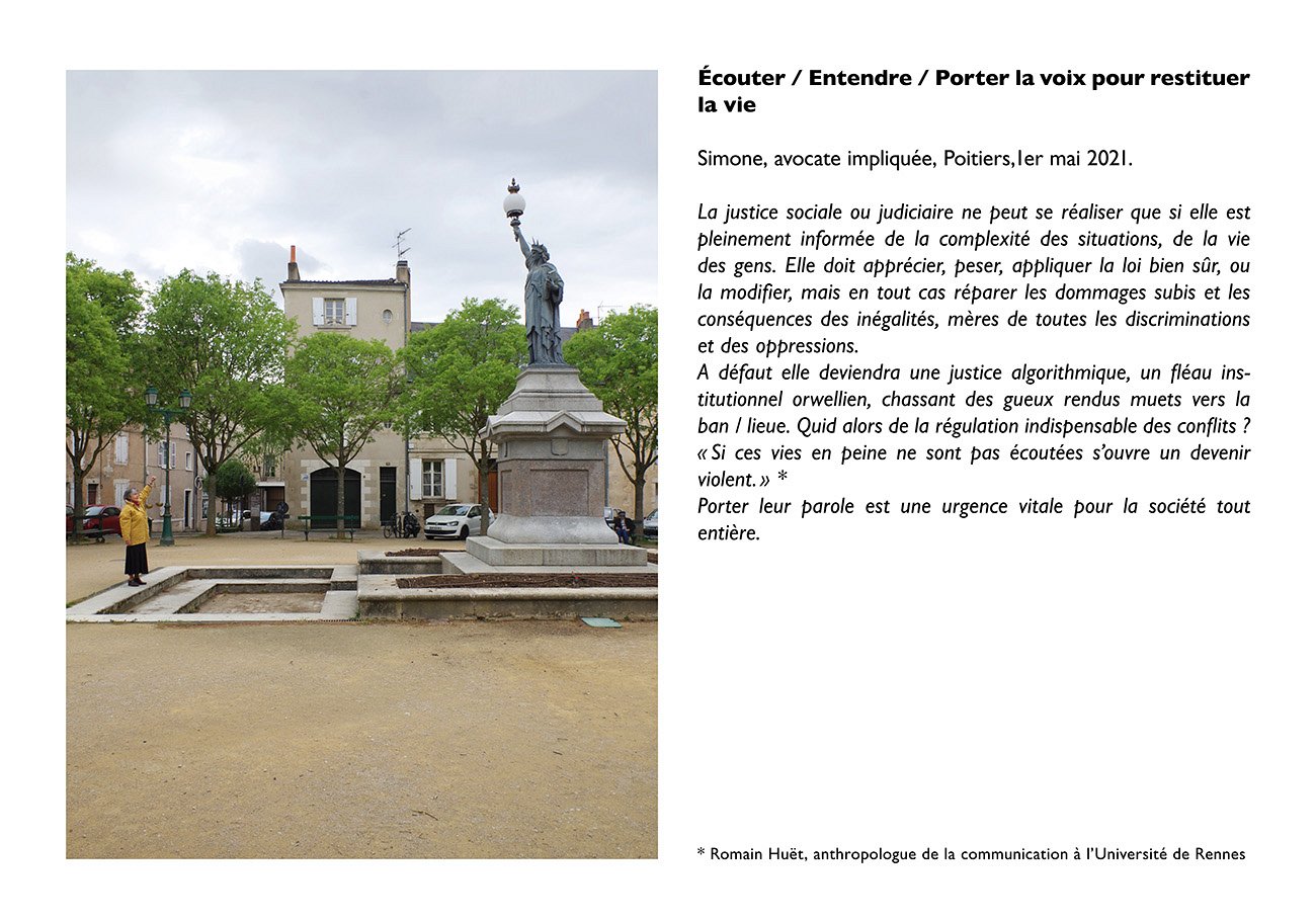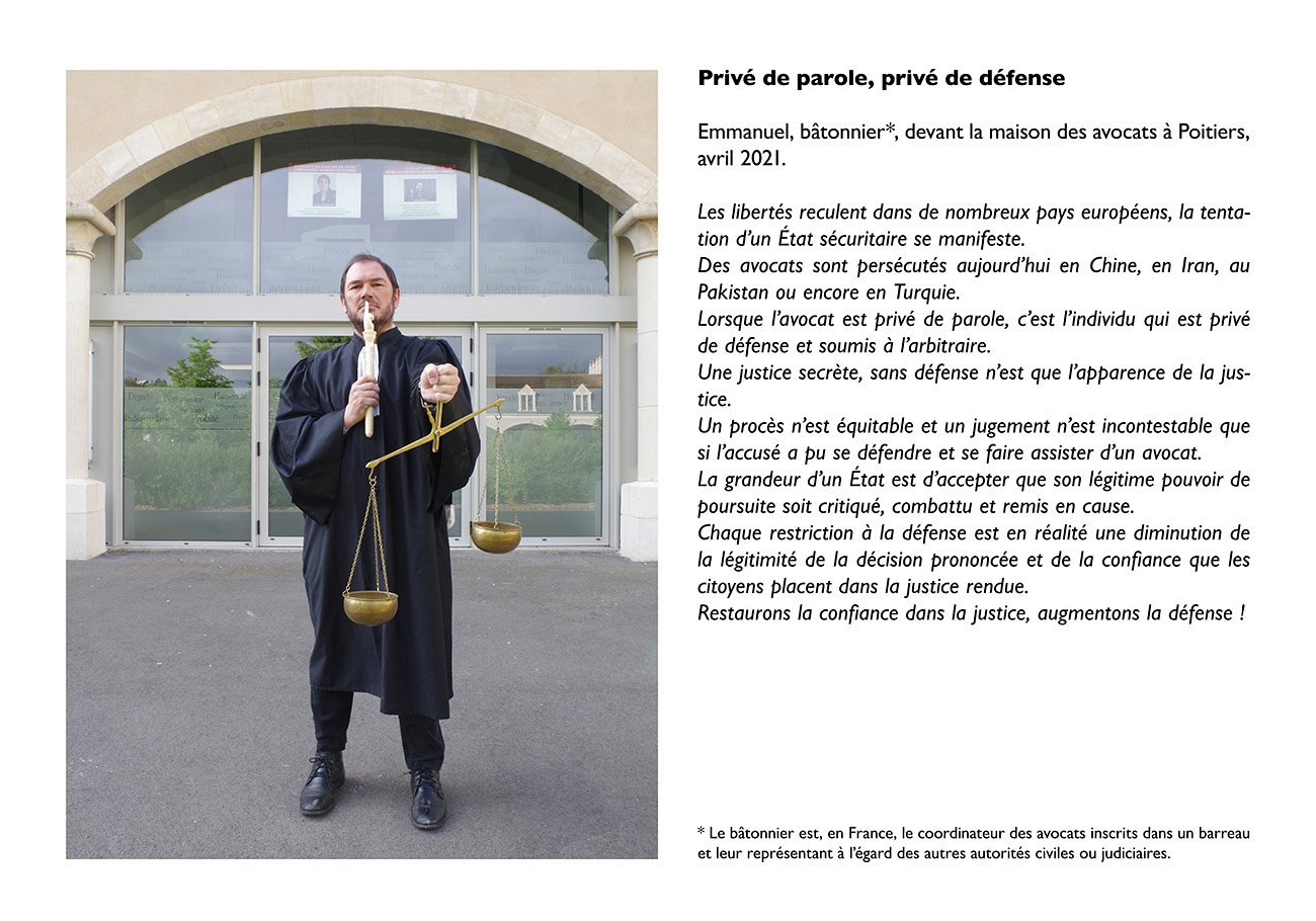 Remerciements à Jocelyne Ginestet, Frédéric Robin, Farah Rachmat, Élisabeth Ballet, Anastassia Makridou-Bretonneau, Vincent Victor Jouffe, Peter & Uta Gautel et Jason Karaïndros pour leur aide précieuse, à Amnesty International et Enda Europe, à Aminata Soumaoro, à Marilyne Poulain et Christine Kermoal de la CGT, au labo photo Ima Chrom’, à Po Sim Sambath, Frédéric Ramade et l’équipe d’Arte Créative - Ateliers A, à Dominique Truco, Valérie et Jacques Villeglé et la galerie Georges-Philippe & Nathalie Valois, à Christian Boltanski et au musée MAC VAL, à Véronique Pattegay, Patrice Pattegay et Théo Ampilhac, Il Faut le Faire, Goussainville, à l’association Eurêka, à Anne Collin du Parisien, à PICTO, au T2G – théâtre de Gennevilliers, à l’École supérieure d’art de La Réunion, aux Médecins du Monde, au musée du quai Branly, à CABININ, Çanakkale, à Agnès Tricoire, à l’agence B+A Architectes, Vincent Brossy et Michaël Fellmann, à Jochen Gerz, à la première présidente de la cour d’appel, au président du tribunal judiciaire et à l’équipe du palais de justice de Poitiers, à Georges Faraklas et Jean-Charles Moretti, à la Ferme Bio 86 à Mignaloux-Beauvoir, à Jean-Luc Terradillos et l’Actualité Nouvelle-Aquitaine, à Frédéric Chauvaud et la Maison des Sciences de l’Homme et de la Société, Université de Poitiers, à l’Association Française pour l’Histoire de la Justice, au Studio Ludo et à l’Atelier Petit par Camille Maupin, au Cirque Octave Singulier, à Denis Montebello, Costas Manganiotis, Anne Lanci, à Sylvain Soussan du Musée des nuages, à Mathias Gautel et au Städtisches Klinikum Karlsruhe, à Marjorie Miccuci, Élisabeth Milon et bien sûr à tous les participants.