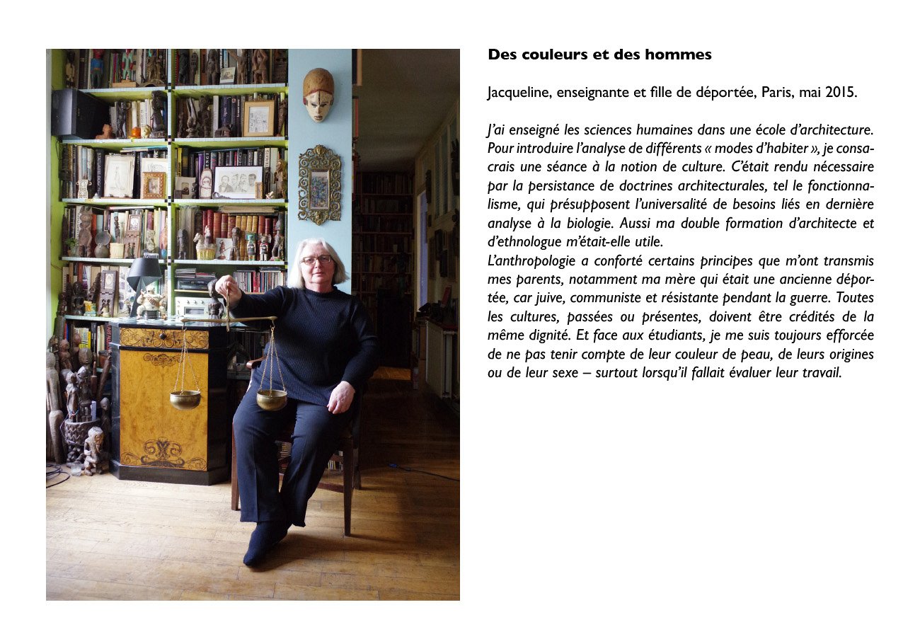 Avec une balance en laiton et Abdel, Alain, Alice, Anaïs, Anestis, Anne, Anne Charlotte, Antoine, Assimoula, Aude, Aurélien, Benoît, Bernhard, Bouba, Camille, Carole, Catherine, Célestin, Céline, Cha Youn, Chiemerie, Christian, Christiane, Claudia, Corinne, Dagmar, Dalaï, Damien, Daniel, Deniz, Didier, Dominique, Doriane, Édouard, Emmanuel, Éric, les enfants de Goussainville, les étudiants de licence 3, 2014-15 de l’école d’architecture ENSAPLV, Fabricia, Fanny, Fatou, Flora, Florian, Franck, Françoise, Frédéric, Gaëlle, Georges, Gilles, Gwen, Gwenola, Halina, Héloïse, Hugo, Irène, Isabelle, Jacqueline, Jacques, Jason, Jo, Jocelyne, Kader, Katerina, Khader, Kiêt, Laure, Léon, Mahaut, Mathieu, Micheline, Michelle, Mohamed, la Mort, Muriel, Nadarajah, Naomie, Nathalie, Natia, Nazrul, Nicolas, Nuri, Olivier, Omar, Özge, Patrick, Peter, Philippe, Pierre, Pierre-Jean, le Pinus pinea, Quentin, Racha, Raphaël, Ray, un réfugié érythréen, le Rhin, Sabine, Sandess, Sándor, Sandra, Sérine, Simone, Skall, Sophia, Stéphane, Uta, Valérie, Vasileia, Véronique alias Utopia, Victoire, Vincent, Virginia, Virginie, Yann, Younoussa, Yves…