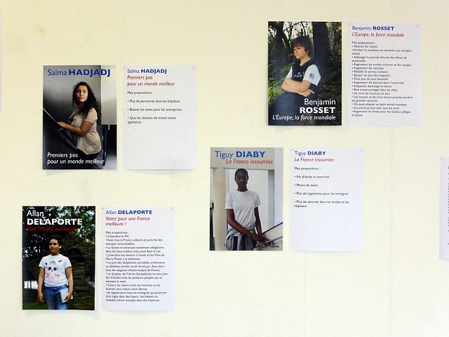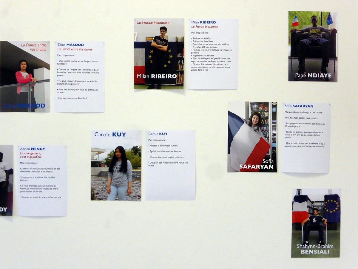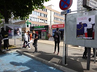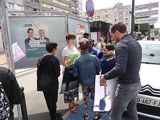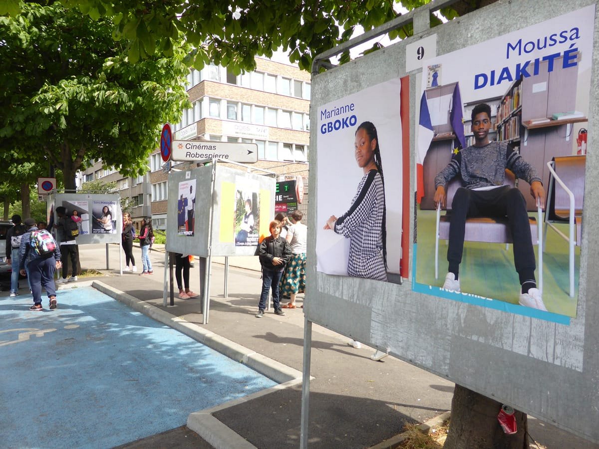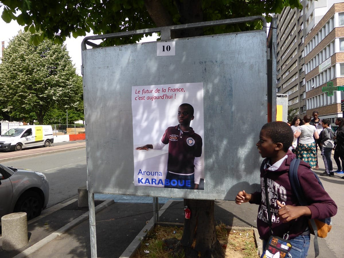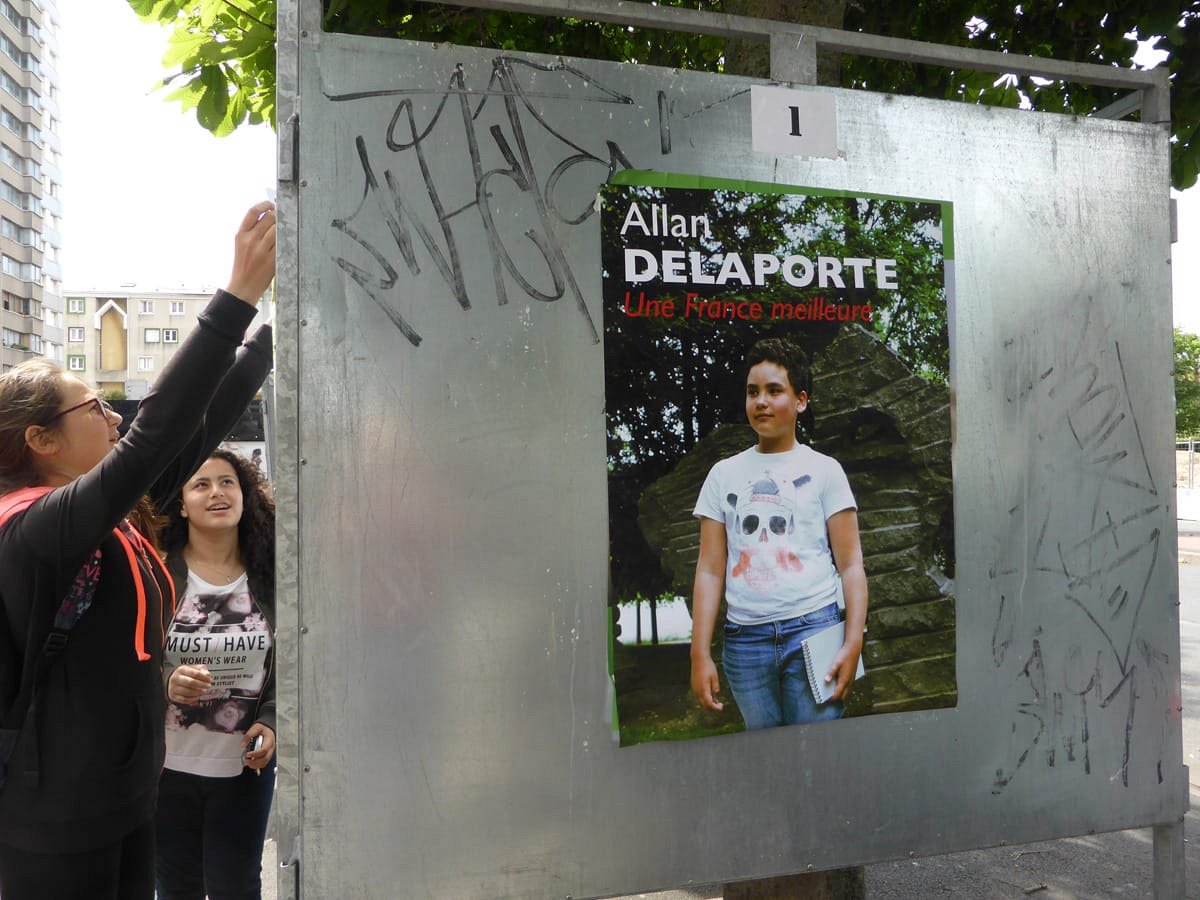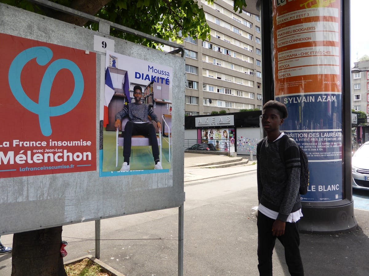 Election leaflets and posters, displayed “pirating” the official poster panels during the legislative election campaign of 2017, Vitry-sur-Seine.