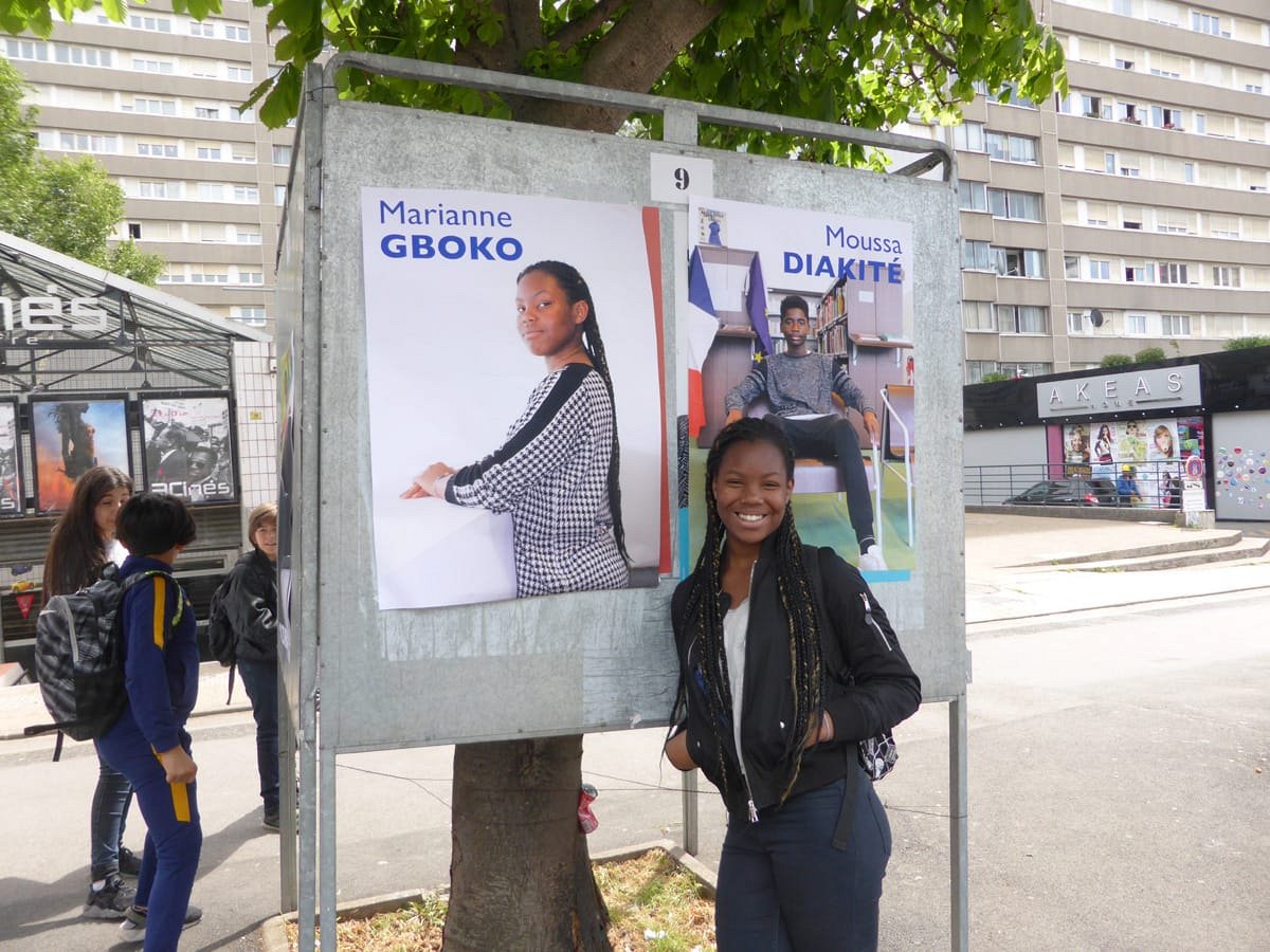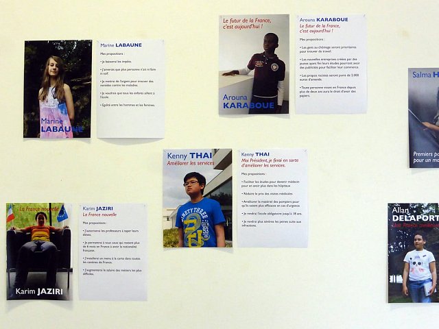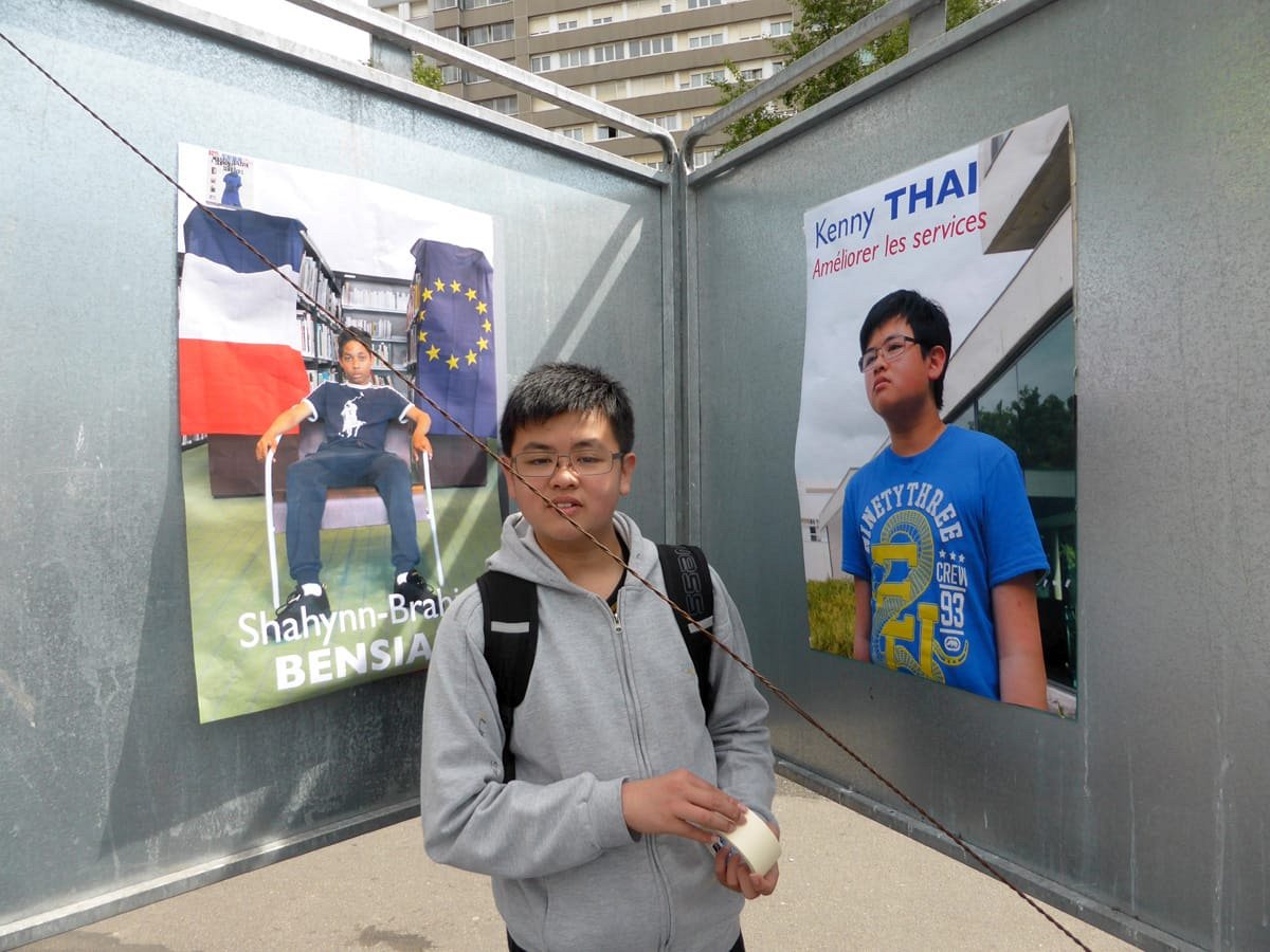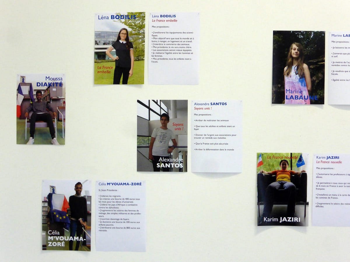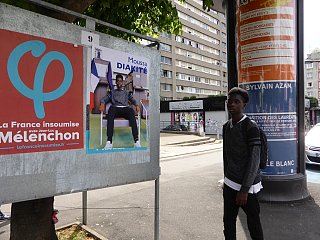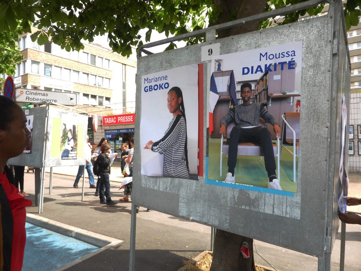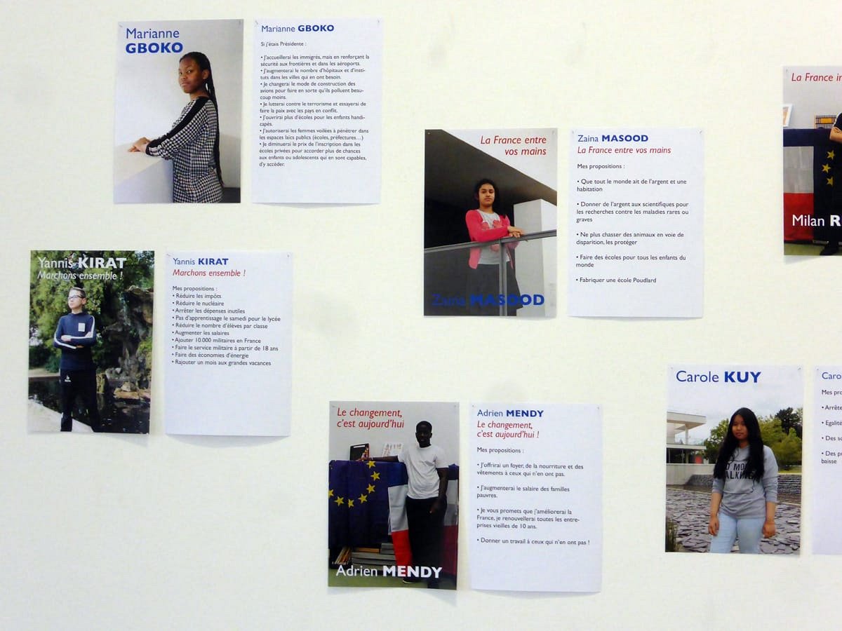 Election leaflets and posters, displayed “pirating” the official poster panels during the legislative election campaign of 2017, Vitry-sur-Seine.