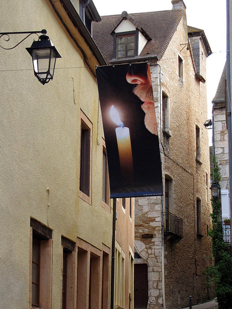 73 bannières créées par 38 artistes dans les rues de la cité médiévale de St.-Gengoux-le-National, Bourgogne, du 20 mai au 21 septembre 2021. Exposition en plein air sur initiative d’Anne et Max Lanci et avec le soutien de partenaires locaux.