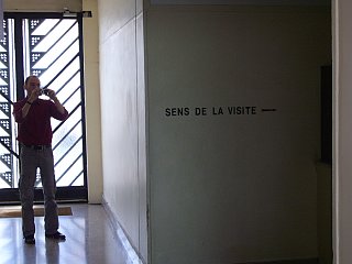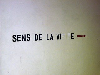 The corridor leading to the gallery - which was indeed in the ’sous-sol’, the basement of the building - bore a sign with an arrow (“Sens de la visite - Direction of the Visit” became “Sens de la vie - Sense of Life”).