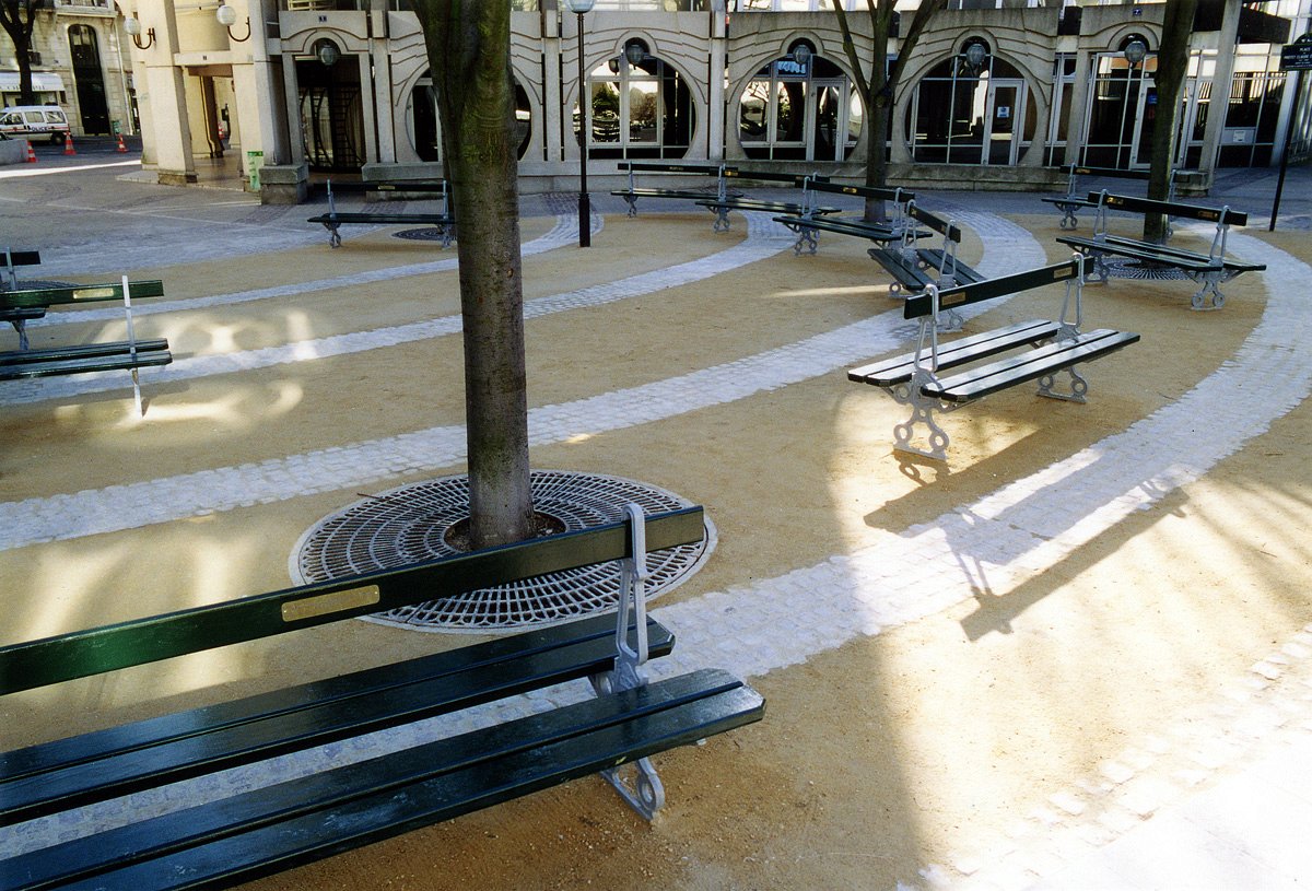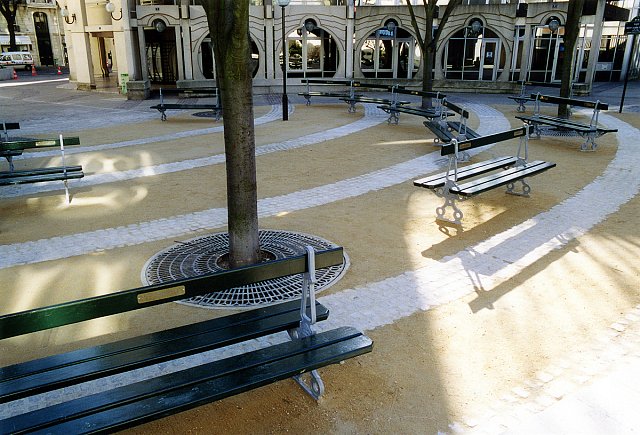→ the creation of a warm and welcoming atmosphere in the square, by avoiding the overly symmetric and solumn character of the former configuration.