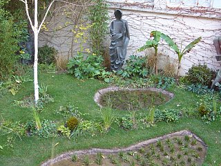 On a proposal of the artist, the garden has been transformed into a landscape reminiscent of Indonesia by the gardeners of the Parcs et Jardins de la Ville de Paris.