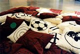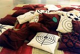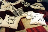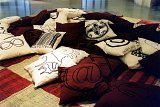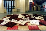 A carpet made of natural fibres with 64 squares, about 4.50 m X 4.50 m, and 64 cushions, each with a different symbol from the Arab, Berber, or European world, from prehistoric times to today. Notion of mixing, blending and bringing cultures from around the Mediterranean together.