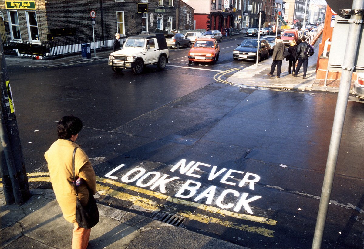 In 2022, the EVA International art biennial celebrates its 45th anniversary under the paradoxical title NEVER LOOK BACK, as a tribute to our urban intervention of 1996.