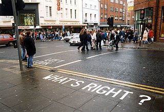 Inscriptions for pedestrians in the streets of Limerick, Irland, for the contemporary art biennial EV+A 1996, curator Guy Tortosa.