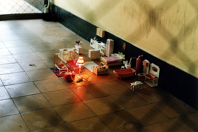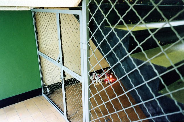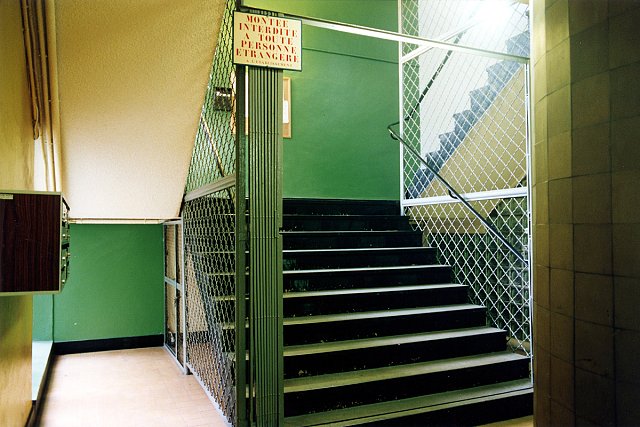 Installation at the homeless shelter Cité de Refuge, Paris, under a staircase leading to the dormitory.