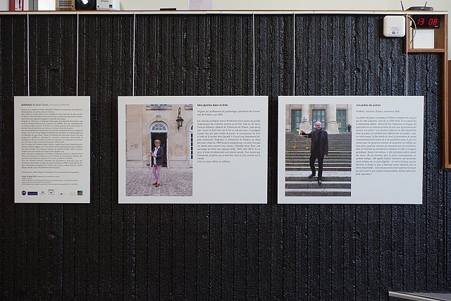 Le premier volet de ce chapitre de Justice(s) a été exposé dans la salle des pas perdus du nouveau palais de justice de Poitiers du 12 janvier au 11 juillet 2022, le deuxième volet à la MSHS de l’université de Poitiers du 1er mars au 29 avril. Vernissage commun le 14 mars 2022.