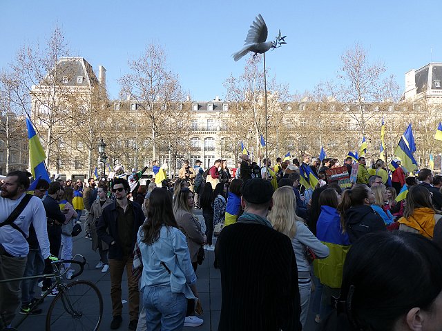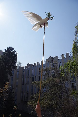 La Colombe est aussi présentée à Bannières d’artistes à St.-Gengoux-le-National, Bourgogne, été 2022, exposition en plein air sur initiative d’Anne et de Max Lanci.
