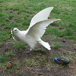 Guerre et Paix est montré en 2023 dans l’exposition évolutive Zukunftswerkstatt Frieden (Atelier sur le futur de la paix), au Kunst-Quartier Osnabrück, Allemagne, à l’occasion des 375 ans du traité de paix de Westphalie, sur invitation de Jens Raddatz, et dans l’exposition Legt die Waffen nieder auf... à la Rathausgalerie Steyr, Autriche, curateur Johannes Angerbauer.