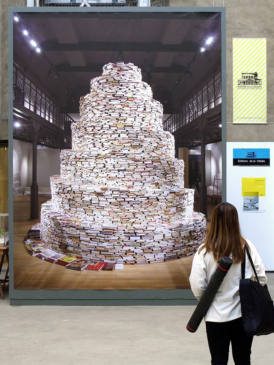 La Tour de Babel en « trompe-l’œil » à l’exposition des éditions de la Villette L’espace publié, ENSAPLV, Paris 2021-2022. -