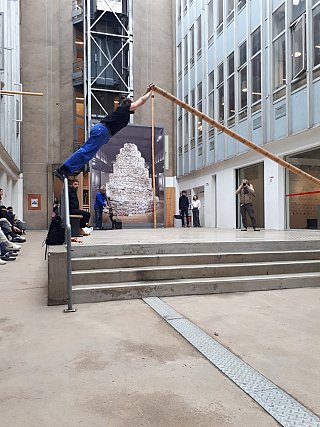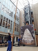 Depuis 2021 la Tour de Babel accueille le public avec un très grand tirage photo « trompe-l’œil » dans l’atrium de l’ENSAPLV. Il a été installé à l’occasion de l’exposition des 40 ans des éditions de la Villette L’espace publié.