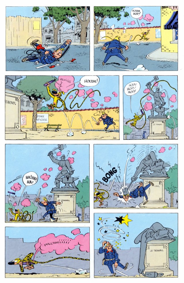 Bernard Tranchandon has come up with an astonishing postscript. In André Franquin’s comic strip Spirou and Fantasio, in the 1956 volume The Dictator and the Mushroom, a magical substance softens metal. Here’s what happens on page 8: