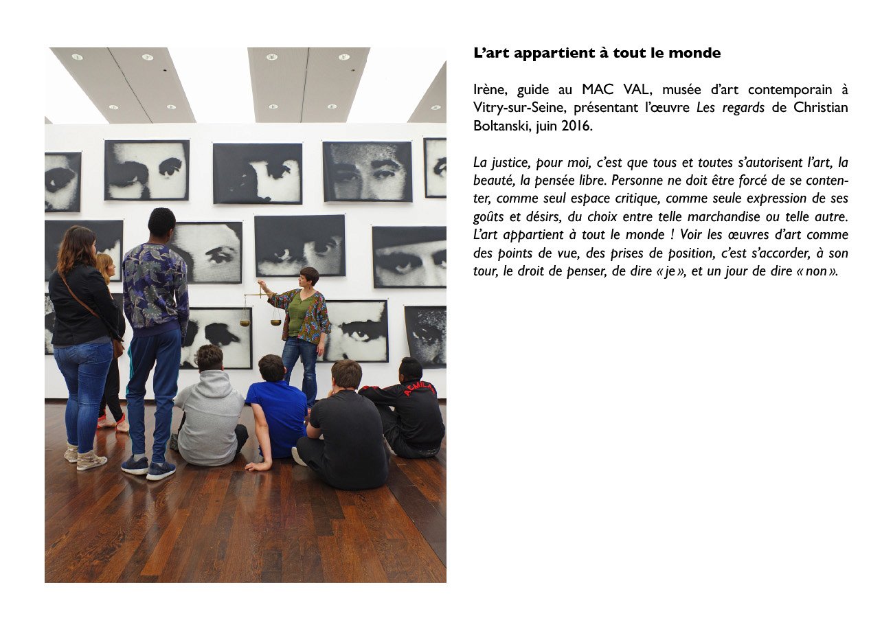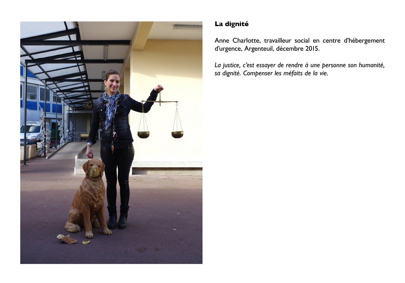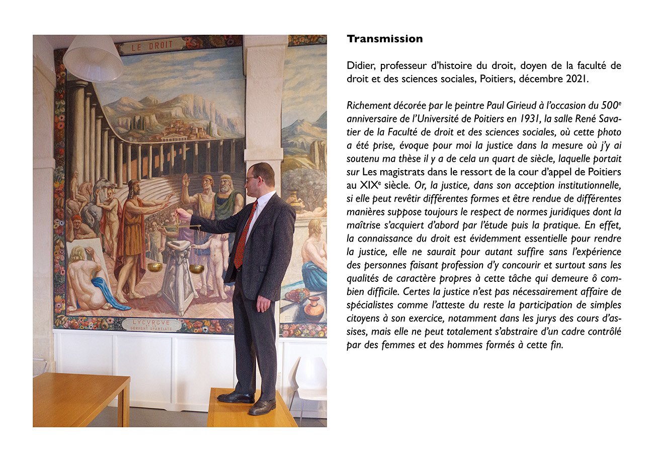 Remerciements à Jocelyne Ginestet, Frédéric Robin, Farah Rachmat, Élisabeth Ballet, Anastassia Makridou-Bretonneau, Vincent Victor Jouffe, Peter & Uta Gautel et Jason Karaïndros pour leur aide précieuse, à Amnesty International et Enda Europe, à Aminata Soumaoro, à Marilyne Poulain et Christine Kermoal de la CGT, au labo photo Ima Chrom’, à Po Sim Sambath, Frédéric Ramade et l’équipe d’Arte Créative - Ateliers A, à Dominique Truco, Valérie et Jacques Villeglé et la galerie Georges-Philippe & Nathalie Valois, à Christian Boltanski et au musée MAC VAL, à Véronique Pattegay, Patrice Pattegay et Théo Ampilhac, Il Faut le Faire, Goussainville, à l’association Eurêka, à Anne Collin du Parisien, à PICTO, au T2G – théâtre de Gennevilliers, à l’École supérieure d’art de La Réunion, aux Médecins du Monde, au musée du quai Branly, à CABININ, Çanakkale, à Agnès Tricoire, à l’agence B+A Architectes, Vincent Brossy et Michaël Fellmann, à Jochen Gerz, à la première présidente de la cour d’appel, au président du tribunal judiciaire et à l’équipe du palais de justice de Poitiers, à Georges Faraklas et Jean-Charles Moretti, à la Ferme Bio 86 à Mignaloux-Beauvoir, à Jean-Luc Terradillos et l’Actualité Nouvelle-Aquitaine, à Frédéric Chauvaud et la Maison des Sciences de l’Homme et de la Société, Université de Poitiers, à l’Association Française pour l’Histoire de la Justice, au Studio Ludo et à l’Atelier Petit par Camille Maupin, au Cirque Octave Singulier, à Denis Montebello, Costas Manganiotis, Anne Lanci, à Sylvain Soussan du Musée des nuages, à Mathias Gautel et au Städtisches Klinikum Karlsruhe, à Marjorie Miccuci, Élisabeth Milon et bien sûr à tous les participants.