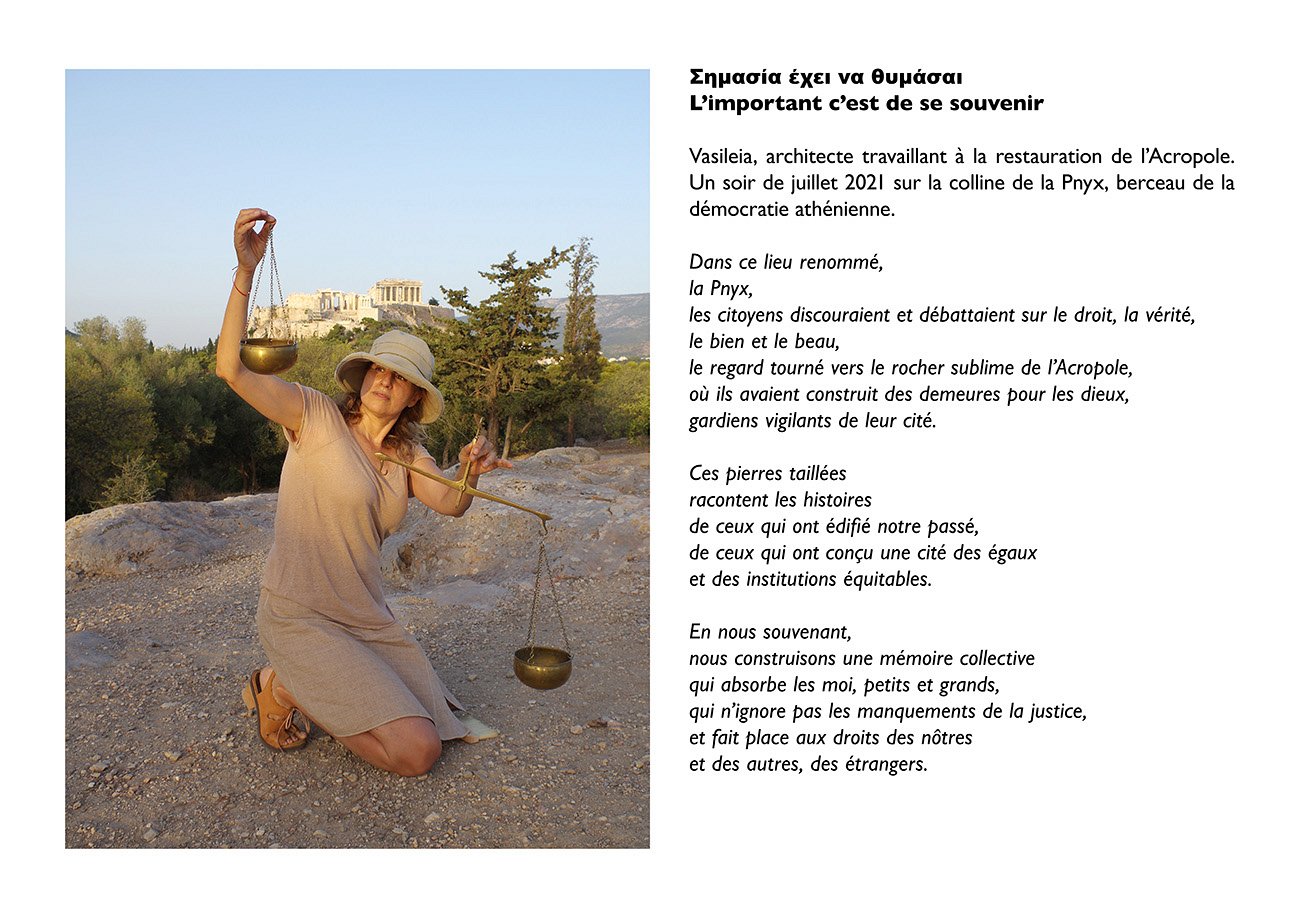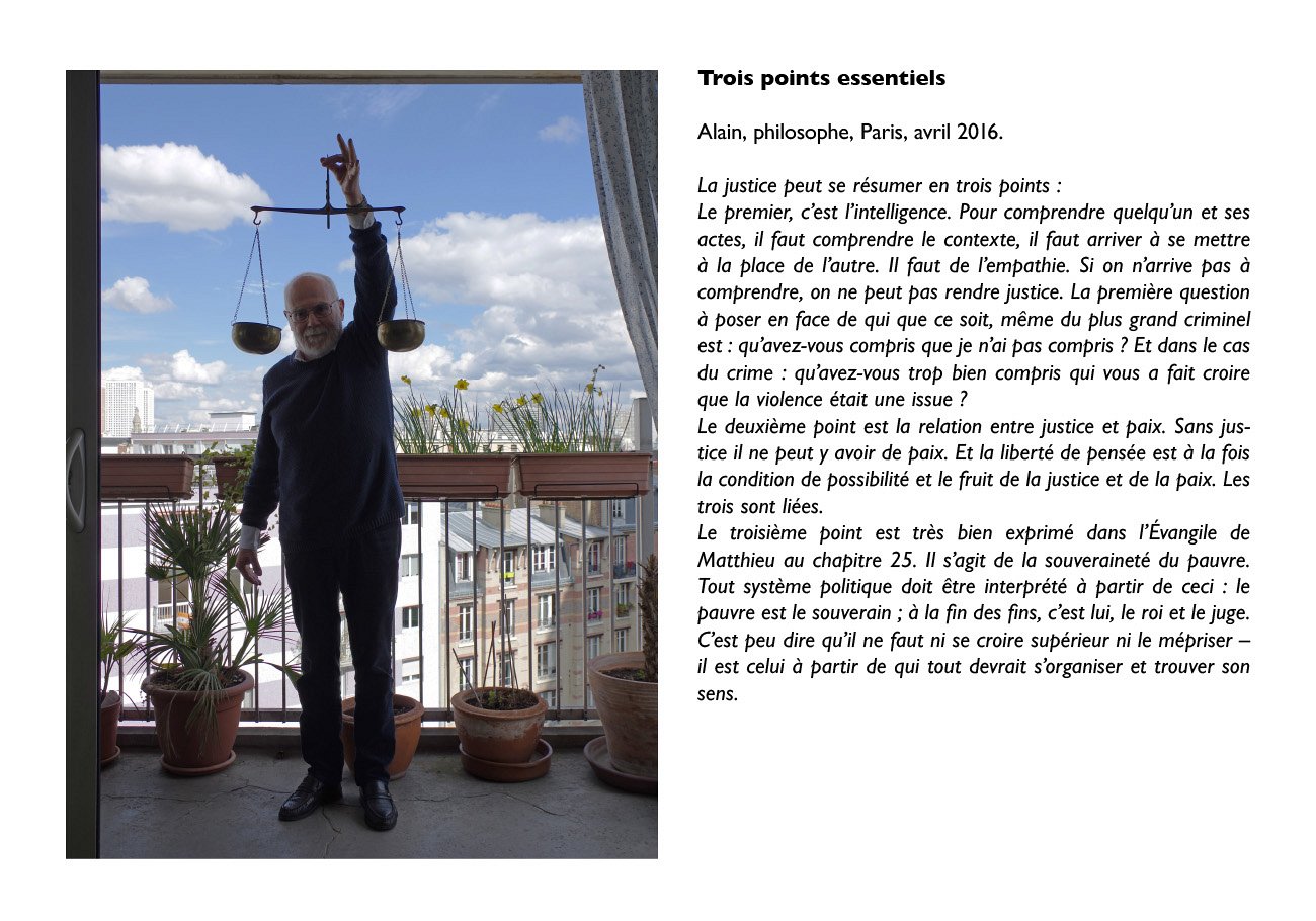 Avec une balance en laiton et Abdel, Alain, Alice, Anaïs, Anestis, Anne, Anne Charlotte, Antoine, Assimoula, Aude, Aurélien, Benoît, Bernhard, Bouba, Camille, Carole, Catherine, Célestin, Céline, Cha Youn, Chiemerie, Christian, Christiane, Claudia, Corinne, Dagmar, Dalaï, Damien, Daniel, Deniz, Didier, Dominique, Doriane, Édouard, Emmanuel, Éric, les enfants de Goussainville, les étudiants de licence 3, 2014-15 de l’école d’architecture ENSAPLV, Fabricia, Fanny, Fatou, Flora, Florian, Franck, Françoise, Frédéric, Gaëlle, Georges, Gilles, Gwen, Gwenola, Halina, Héloïse, Hugo, Irène, Isabelle, Jacqueline, Jacques, Jason, Jo, Jocelyne, Kader, Katerina, Khader, Kiêt, Laure, Léon, Mahaut, Mathieu, Micheline, Michelle, Mohamed, la Mort, Muriel, Nadarajah, Naomie, Nathalie, Natia, Nazrul, Nicolas, Nuri, Olivier, Omar, Özge, Patrick, Peter, Philippe, Pierre, Pierre-Jean, le Pinus pinea, Quentin, Racha, Raphaël, Ray, un réfugié érythréen, le Rhin, Sabine, Sandess, Sándor, Sandra, Sérine, Simone, Skall, Sophia, Stéphane, Uta, Valérie, Vasileia, Véronique alias Utopia, Victoire, Vincent, Virginia, Virginie, Yann, Younoussa, Yves…